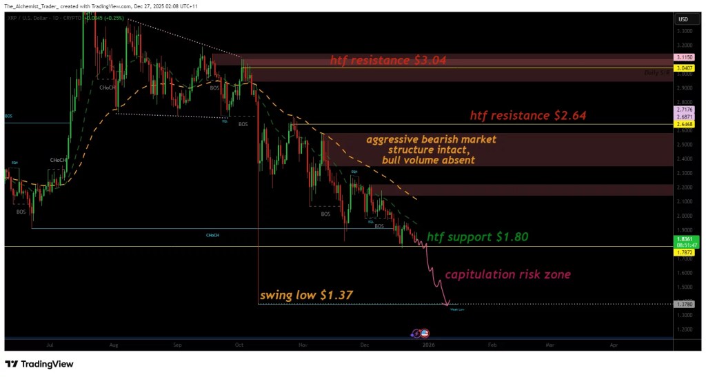 For now, the outlook hinges on whether buyers can defend the $1.80 level with meaningful volume and break the prevailing bearish structure. Until those signals emerge, analysts caution that risks remain skewed to the downside, even as debate continues over whether XRP is undervalued at current levels.